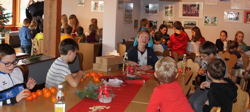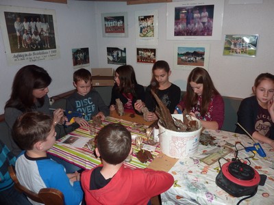 33 kleine Tennisspieler schwangen am vergangenen Sonntag nicht den Tennisschläger, sondern es wurde geschnitten, geklebt und gebastelt. Ganz schnell standen dann auch schon die fertigen Nikoläuse oder Holzteelichter auf dem Tisch.