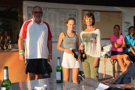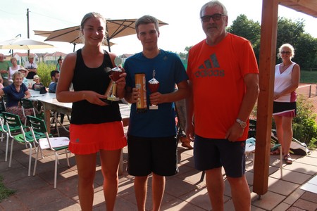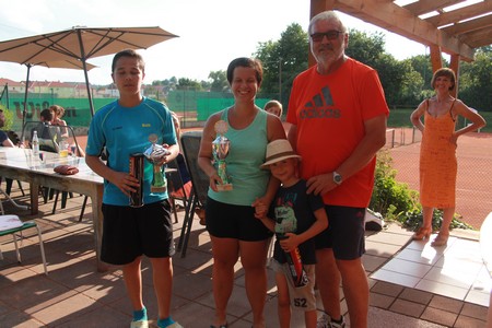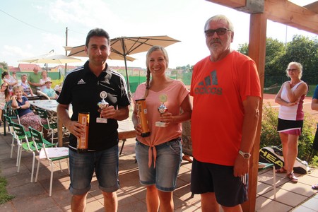 Sieger der diesjährigen Mixed Meisterschaft des TSV Rohrbach wurde der jüngste Teilnehmer Malik Ermert mit seiner Partnerin Tanja Weiss. Die Beiden waren "gleichzeitig auch die kleinsten Teilnehmer der Körpergröße nach", wie Tanja feststellte. In zwei Gruppen aufgeteilt jeweils mit vier Paarungen setzten sich in Gruppe 1 Tanja Weiss/Malik Ermert mit 6:0 Punkten vor Julia Murr/Fabian Bauer durch und die Gruppe 2 wurde von Laura Zwack/Phillip Daniel mit 6:0 Punkten vor Bettina Firnkäs/Erich Altmann mit 4:2 Punkten angeführt. In den Gruppenspielen gab es viele sehr enge Begegnungen und den Zuschauern wurden die ganze Woche über interessante Spiele geboten, in denen die Jugend stark aufspielte und dominierte. Das Finale gewannen Ermert/Weiss klar in zwei Sätzen mit 6:4/6:4 gegen Zwack/Daniel. Dritte wurden Firnkäs/Altmann in einem hart umkämpften Match mit 4:6/6:1/10:2 vor Murr/Bauer. Bei der Siegerehrung hob Vorstand Heinz Huber den "hohen Standard der gezeigten Spiele und die Fairness der Spieler" hervor. Zum Abschluss der heissen Sportwoche fand das Sommerfest statt. Lange saß man an diesem lauen Sommerabend zusammen und genoß ein vorzügliches Essen und da die Spiele und das Wetter ziemlich durstig machten, wurden auch mehrere Halbe Freibier oder von den Damen einige Gläser Melonenbowle getrunken. Eine gelungene sportliche Woche endete mit einem gemütlichen gesellschaftlichen Beisammensein.